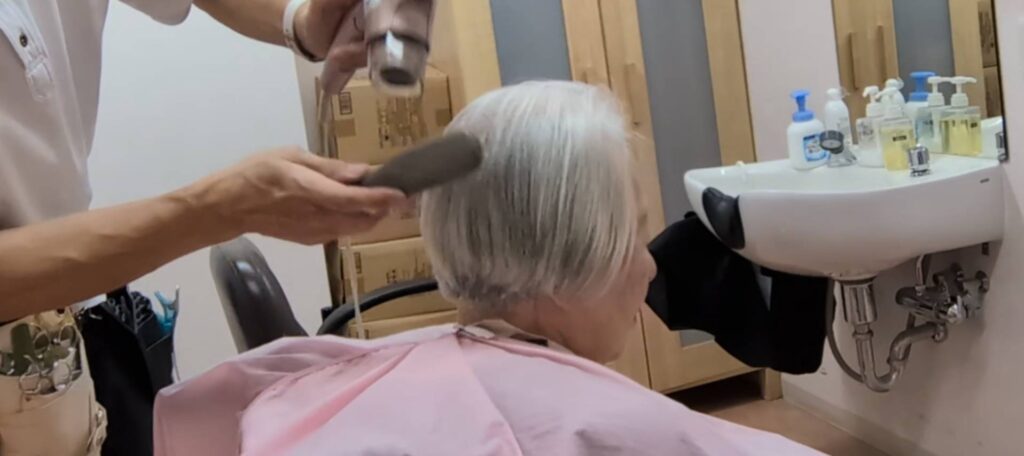 訪問理美容さるるは、相模原市・町田市を中心にサービスを提供しています。大手訪問理美容専門会社にて10年間、70代〜100歳超の方々のカット・パーマを担当してきた代表が、ドライヤー・ヘアキャップなどプロ仕様の機材をすべて持ち込み、店舗と同じ環境を作ってから施術を行います。